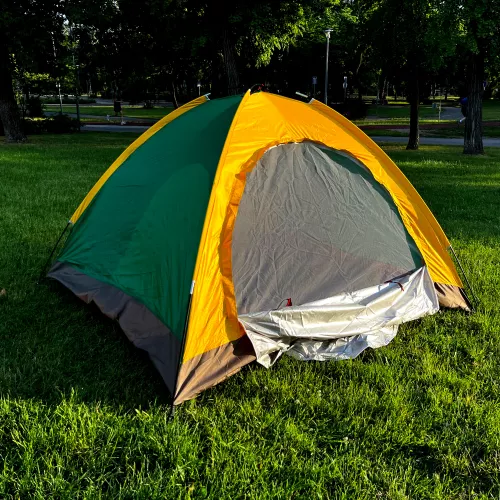 - 1db 4 személyes sátor beépített összecsúsztatható masszív üvegszál-ABS merevítőkkel