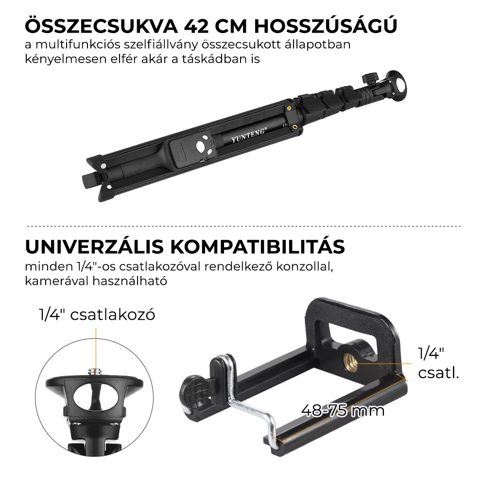 123 cm Bluetooth-szelfiállvány / monopod + tripod + távirányító + gyöngyvászon tok