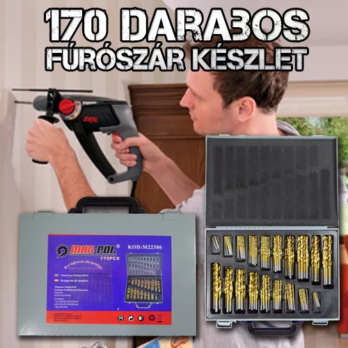 170 db-os spirálos fúrófej készlet hordozó fémtáskában