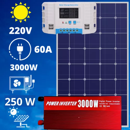 220V/12V napelem rendszer 250W panel 3000W inverter + töltésvezérlő (60 A)