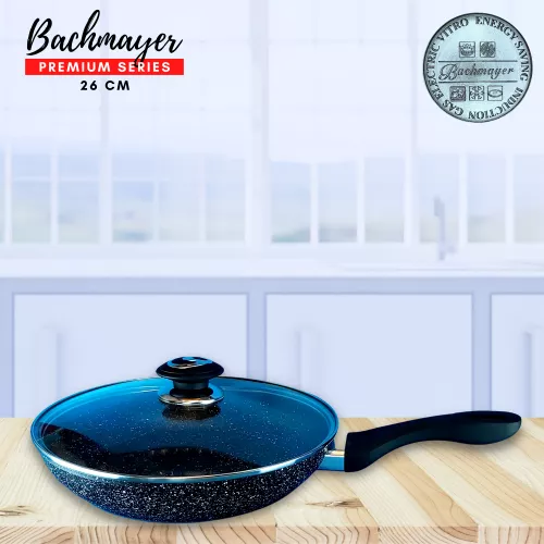 26cm prémium serpenyő márvány bevonattal, üvegfedővel