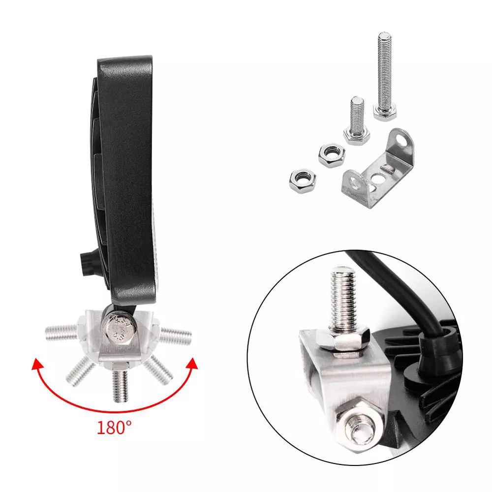 A munkalámpa háza alumínium ötvözetből készült, felszerelése a csomaghoz mellékelt acél konzollal lehetséges. A reflektor 10-30 V közötti feszültségről üzemeltethető.