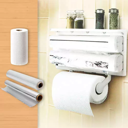 **4 funkció: két fóliarekesz, egy papírtörlőtartó rúd, felső peremes tárolórész
