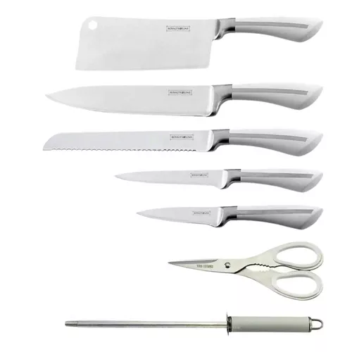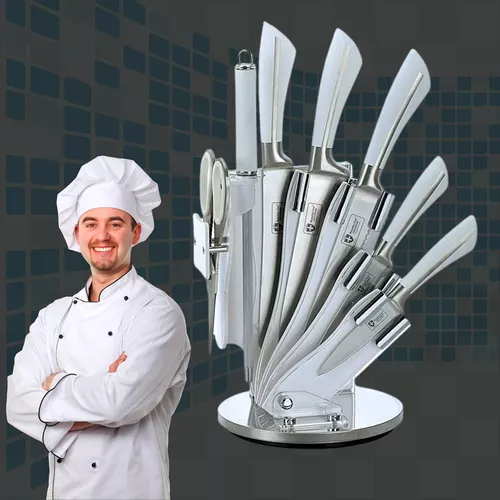 8 részes prémium késkészlet 360°-os forgó állvánnyal – fehér-ezüst