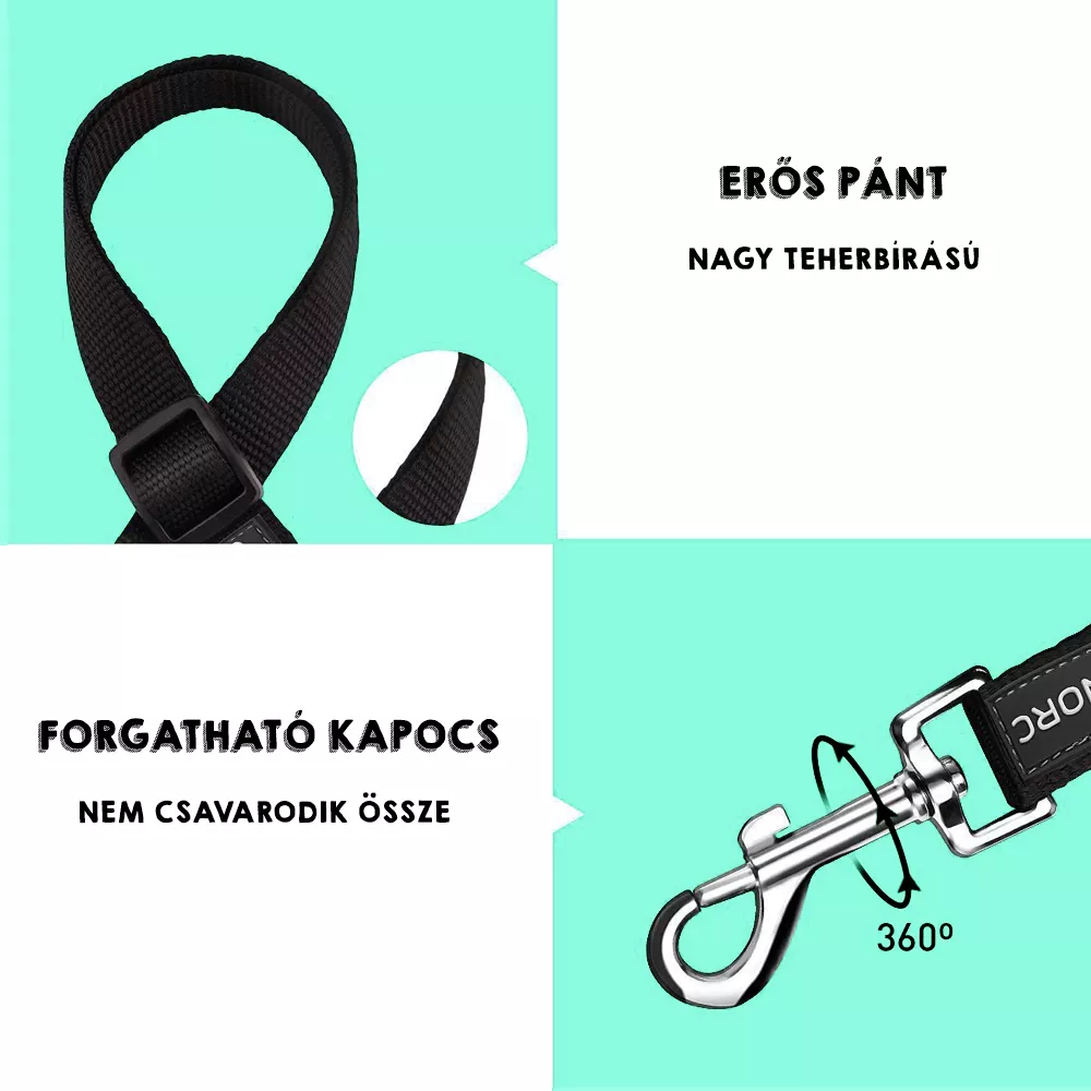 A kapocs 360°-ban forgatható, így az öv akkor se csavarodik be, ha kutyusod kicsit izgága. A kapocs
