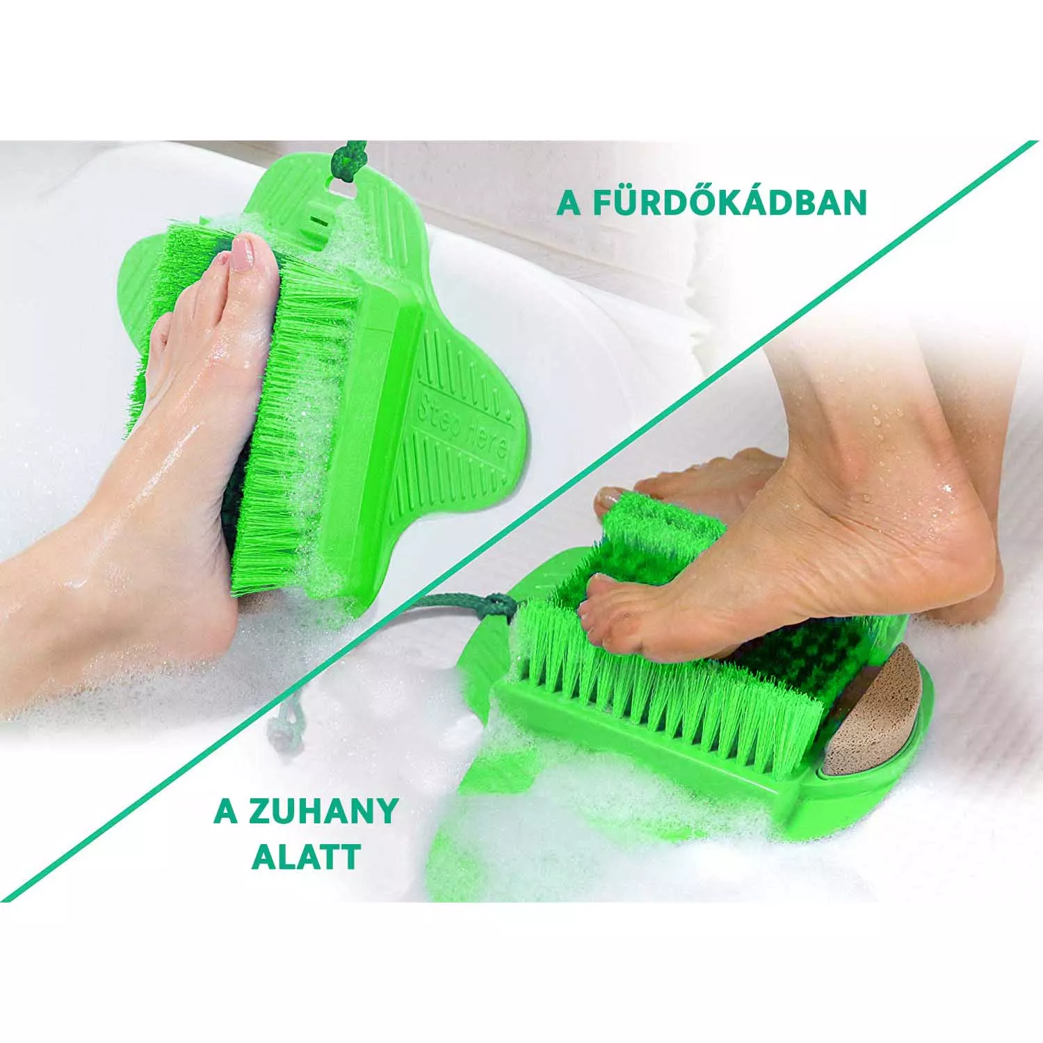 **megtisztítja, ápolja, masszírozza a talpbőrt