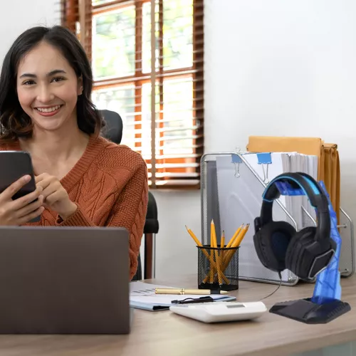 Ezen az állványon a játék, a munka, vagy a filmnézés befejeztével biztonságban tárolhatod a headseted, így nem csak a sérülésektől véded meg, hanem rendezettebbé is teheted az asztalod akár otthon, akár az irodában.