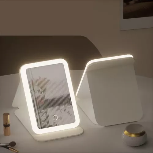 Asztali ledes kozmetikai tükör, érintőgombos, összecsukható sminktükör, hideg, normál, meleg fényű
