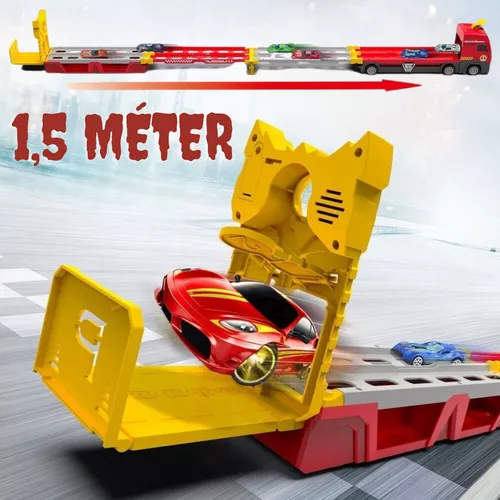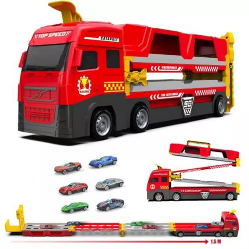 Lepd meg szemed fényét ezzel a többszintes kamionnal, amit egy mozdulattal katapultkilövő állomással felszerelt 1, 5 méter hosszú versenypályává alakíthattok át és játsszatok, amíg csak kedvetek van.