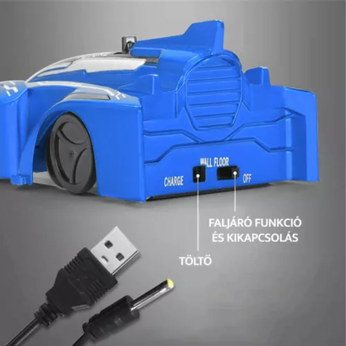 Figyelem! Az autó alján látható fehér ragasztó csíkot ne szedd le, mert az autó nem lesz képes a falon közlekedni! Szőnyegen nem használható, homoktól, poros helyektől távol tartandó. Az autót fontos sűrű időközönként (7-9 perc) tölteni, mert merülőfélben már nem marad fent a falon. Az autó csak kikapcsolt állapotában töltődik!