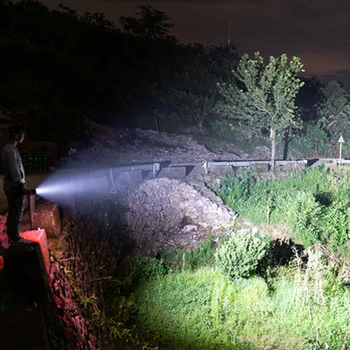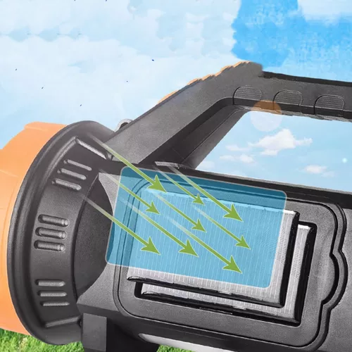 Brutál fényerejű napelemes LED zseblámpa, hordozható reflektor, keresőlámpa