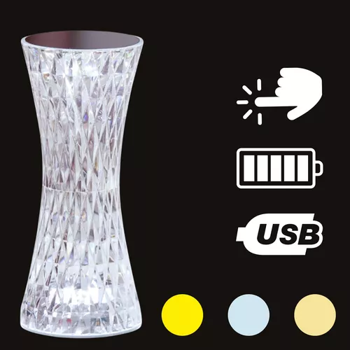 Csavart kristály asztali lámpa fényerőszabályzó +szinhőmérséklet váltó + vezetéknélküli + ütésálló