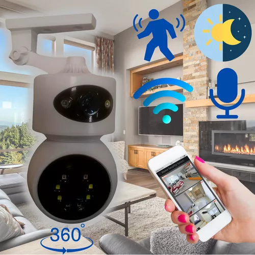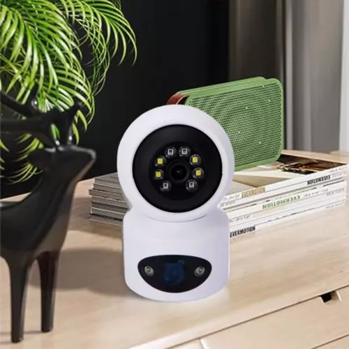 - Dupla lencsével rendelkezik, az egyik fix, a másikat pedig az alkalmazás segítségével 360 fokban forgathatod, vízszintesen és függőlegesen is mozgathatod, így holttér nélkül, mindent láthatsz.
