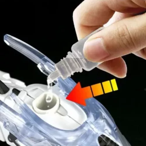 Ez a tartály a dínó fejébe lett beépítve, a mellékelt műanyag palackot használva tudod a vizet beletölteni.