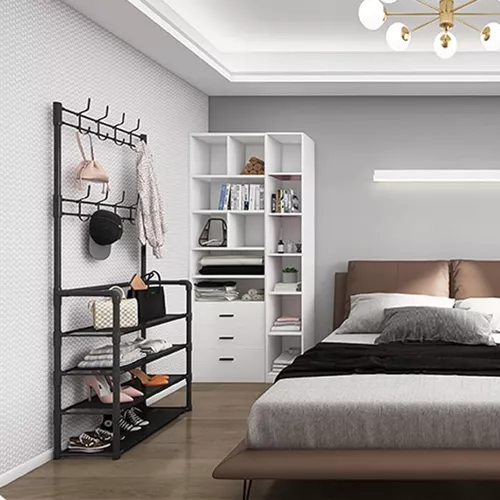 Előszoba állvány, előszobafal 4 szintes cipőtárolóval - fekete