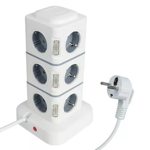 Ez az elosztó torony 12 aljzattal és 4 USB töltőporttal van felszerelve, így egyszerre több eszközt csatlakoztathatsz a legkülönfélébb otthoni vagy irodai igényeid kielégítésére és minden aljzatsorhoz tartozik egy független kapcsoló, hogy csak annyit használhass, amennyit szeretnél.