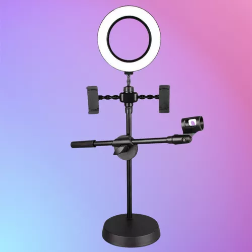 A 36 cm magasságú szelfiállványhoz 2 db telefontartó és 1 db mikrofontartó is tartozik, a stabil tartást pedig a nehezékként funkcionáló talp biztosítja. A körfény és a tartókonzolok könnyedén a megfelelő pozícióba állíthatók – így segítve a fotózáshoz szükséges világítás és a mobilkészülékek minél pontosabb beállítását.
