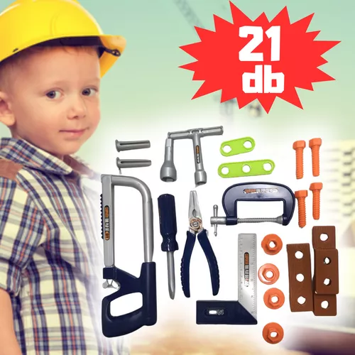 Játék szerszámkészlet, 21 db-os műanyag barkácskészlet