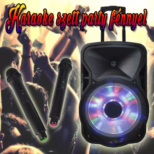 Karaoke hangfal party fénnyel + 2 db vezetéknélküli mikrofon - 100W teljesítmény
