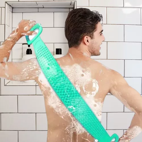 Ez a szilikon hátmosó szalag nem csak kitisztítja a pórusokat, eltávolítja a szennyeződéseket, a felesleges faggyút és az elhalt hámsejteket az ez idáig nehezen elérhető helyeken is, hanem közben kellemes masszázsban is részesítheted magad zuhanyzás alatt.