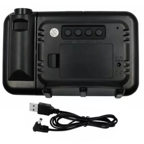 Az órában találsz még ébresztőt és kijelzi a dátumot, hőmérsékletet, a projektor vetítési szöge pedig 180°-ban elforgatható, szabályozható.