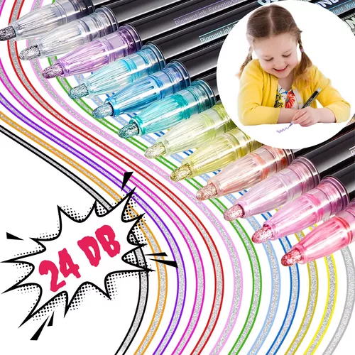 Ez a kontúrvonalas filctoll különleges kialakítású hegyének köszönhetően rajzolás, vagy írás közben az ezüstösen csillogó vonal körül különböző színű a szegély, így gyönyörű színhatást kelt.