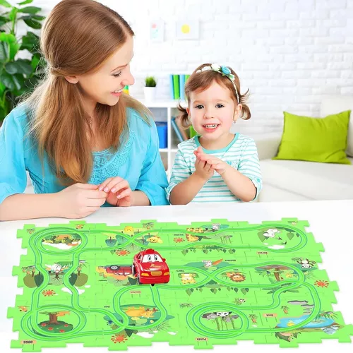 Ezzel a 15 rászes puzzle készlettel különböző autópályákat készíthet, így a kisautó mindig más irányba száguldozhat.