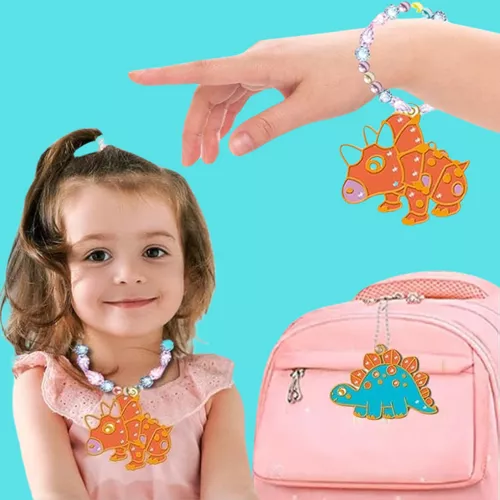 A csomagban található gyönygyökkel a színezést követően a mellékelt kis csipesszel könnyedén tovább díszíthetitek az alkotásotok és a készletben lévő láncra felfűzve büszke díszként a táskáján hordhatja a kis művész.
