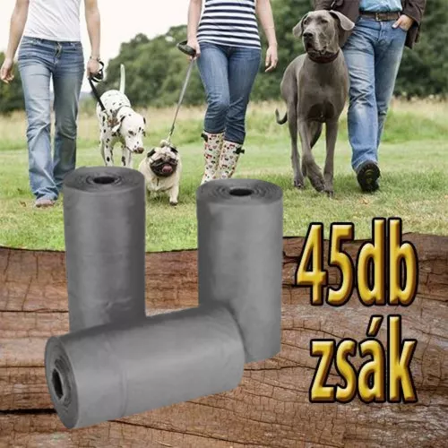 Kutya ürülék összeszedő zsák-45 db-os - szürke