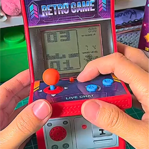 Mini Retro játékgép kinézetű kvarcjáték, hordozható játékkonzol, tetrisz - piros