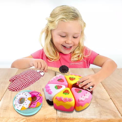 A készlet tartalmaz tépőzárral összeillesztett tortaszeleteket, amiket a mellékelt kis műanyag késsel, vagy tortaszeletelő és szervírozó lapáttal tud ketté "vágni", fagylaltokat, kekszeket és fánkokat, mindent amire csak szüksége lehet.