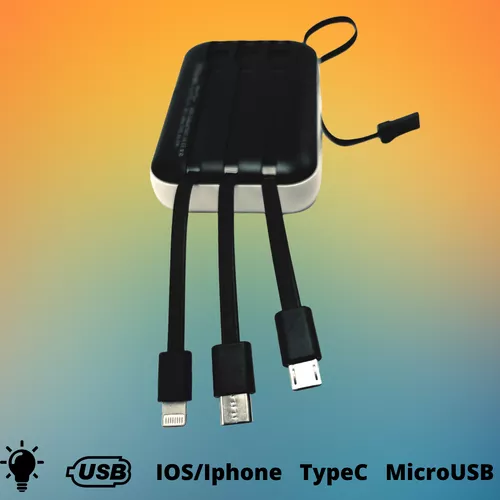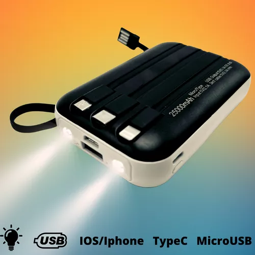 Multi Powebank: Android, iOS, USB, TypeC, MicroUSB, iPhone csatlakozókkal, elemlámpával / 2500mAh