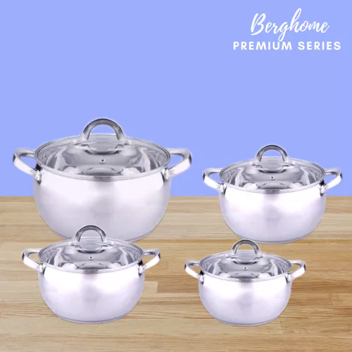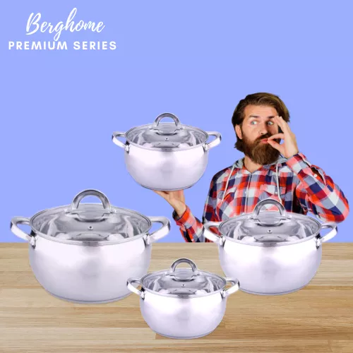 A készlet tartalma 4db, különböző méretű edény üvegfedővel, az edények mindegyike speciális 3 rétegű alumínium-acél hőtároló talppal rendelkezik, így hamarabb, átfő az étel és csökken a főzési idő.