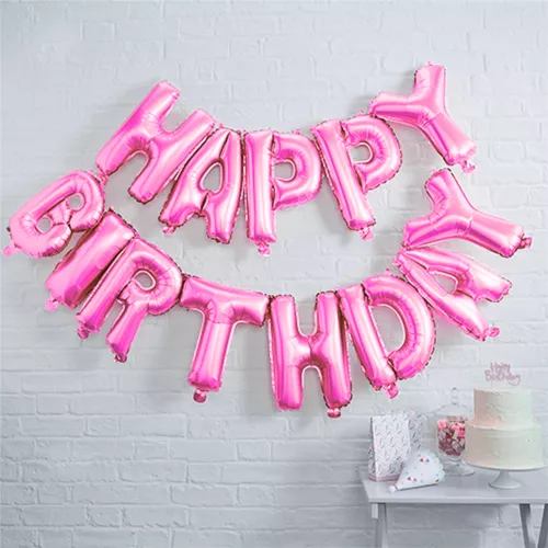Óriás Happy Birthday betű lufik / 13 db-os - rózsaszín