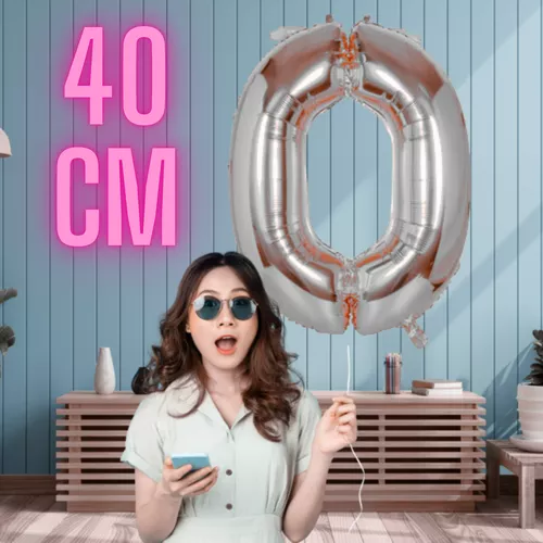Óriás számos lufi / metál fólia, 40 cm (1 db)/ 0-ás számjegy - ezüst