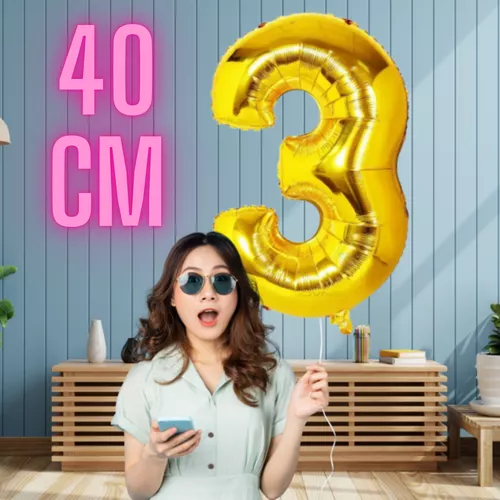 Óriás számos lufi / metál fólia, 40 cm (1 db)/ 3-as számjegy - arany