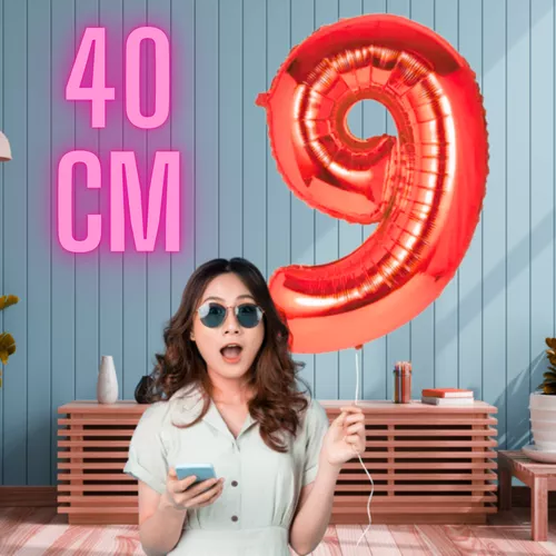 Óriás számos lufi / metál fólia, 40 cm (1 db)/ 9-es számjegy - piros