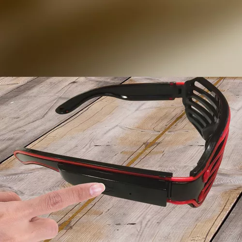 A szemüveg keretén végigfutó LED csík világítása szabályozható - a folyamatos világítás mellett, lassú vagy gyors villogás is választható, amiket a kedved szerint állíthatsz a jobboldali száron található tápon és zavaró vezeték sincsenek!