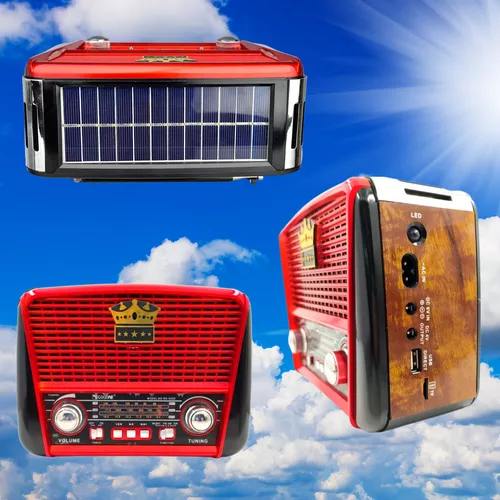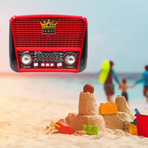 Retró beach hifi bluetooth napelemes rádió, hangszóró + Mp3 - piros/barna