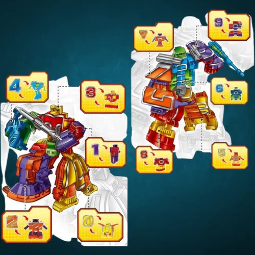 Minden szám egyenként különböző robottá alakítható, de a mellékelt kiegészítő segítségével a figurákat összeilletve egy nagy harcos robotot is készíthet. Az egyiknek egy különleges kard a másiknak pedig lézerágyú a fegyvere.