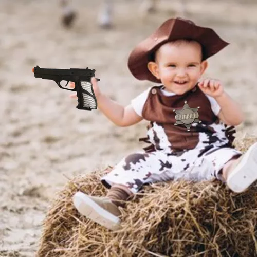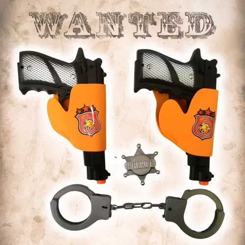 A szett 2 db pisztolyt tartalmaz táskával, amit az övére erősíthet, egy sheriff csillagot, amit feltűzhet magára és egy bilincset is.