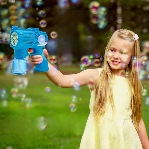 A "pisztoly" teljesen ártalmatlan és elektromos motorjának köszönhetően csak úgy ontja magából a szebbnél-szebb buborékokat.