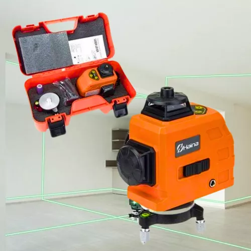 Szintező lézer, 3D önbeállítós, akkumulátoros, 360 fokban látható, 12 vonalas, zöld + praktikus táska