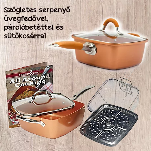 Szögletes serpenyő üvegfedővel, párolóbetéttel és sütőkosárral / Süss az egész családnak!