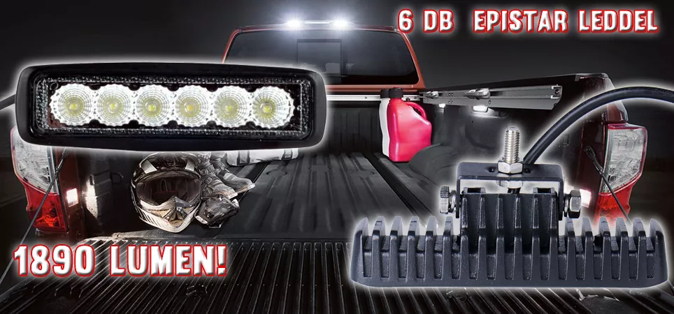 A 100%-osan víz- és porálló munkalámpa 1890 lumen fényerőt bocsát ki, felszereléséhez mindent megtalálsz a csomagban. Rögzítheted például teherautó platóra, targoncára, csomagtartóba.