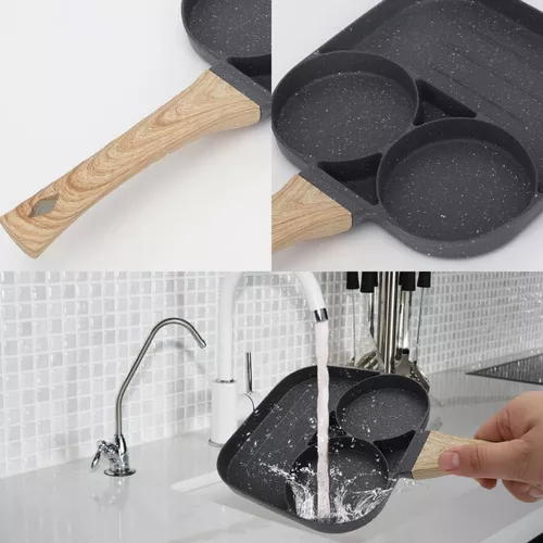 A serpenyő 3 részre osztott kialakítású, így ha szeretnél, akkor különböző ételeket is készíthetsz egymástól elkülönítve.