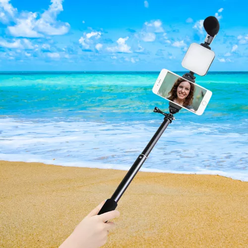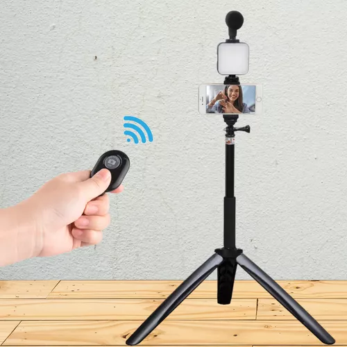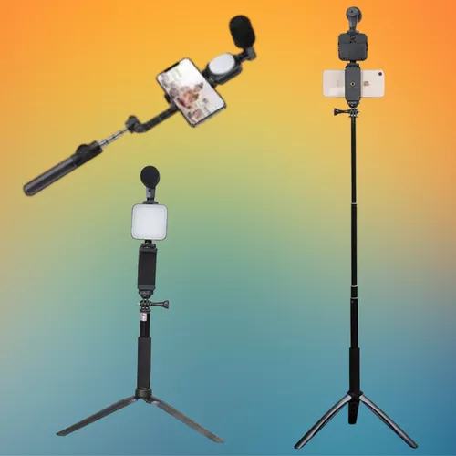 A szelfiállvány teleszkópos, így 60 - 80 cm magasságúra állíthatod, tartozik hozzá 1 db telefontartó és 1 db mikrofon is, a stabil tartást pedig a kinyitható talp biztosítja.