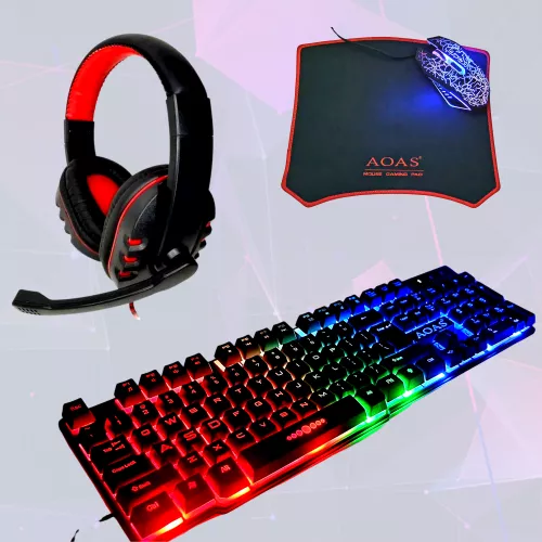 Teljes Gamer Szett: LED Billentyűzet + Egér + Egérpad + Fejhallgató / US