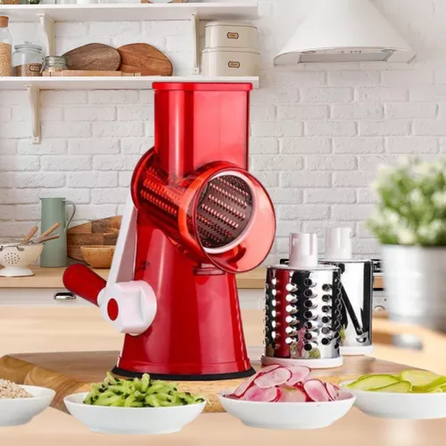 Többfunkciós kézi zöldség-, gyümölcs- és sajtreszelő, -szeletelő készlet 3 féle dobbal - piros