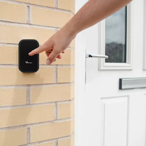 A nyomógomb nagy hatótávolságból is érzékel (200m), így szinte bárhova elhelyezhető (ragasztható vagy csavarozható), mivel a két egység könnyedén megtalálja a kapcsolatot akár a falakon keresztül is.